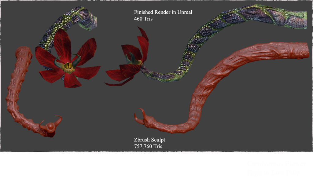 The Cargo Deck is a sci-fi project that I've been working on. This is the first phase of the project, a hallway system leading to the cargo area. . It takes place on a cargo ship lost in deep space. The story revolves around surviving an attack from carnivorous space plants. For this project I wanted to practice my organic modeling, texture size reduction, and digital sculpting.